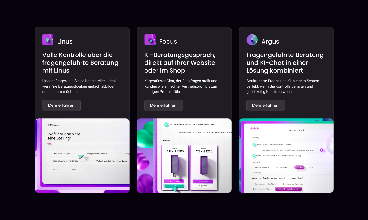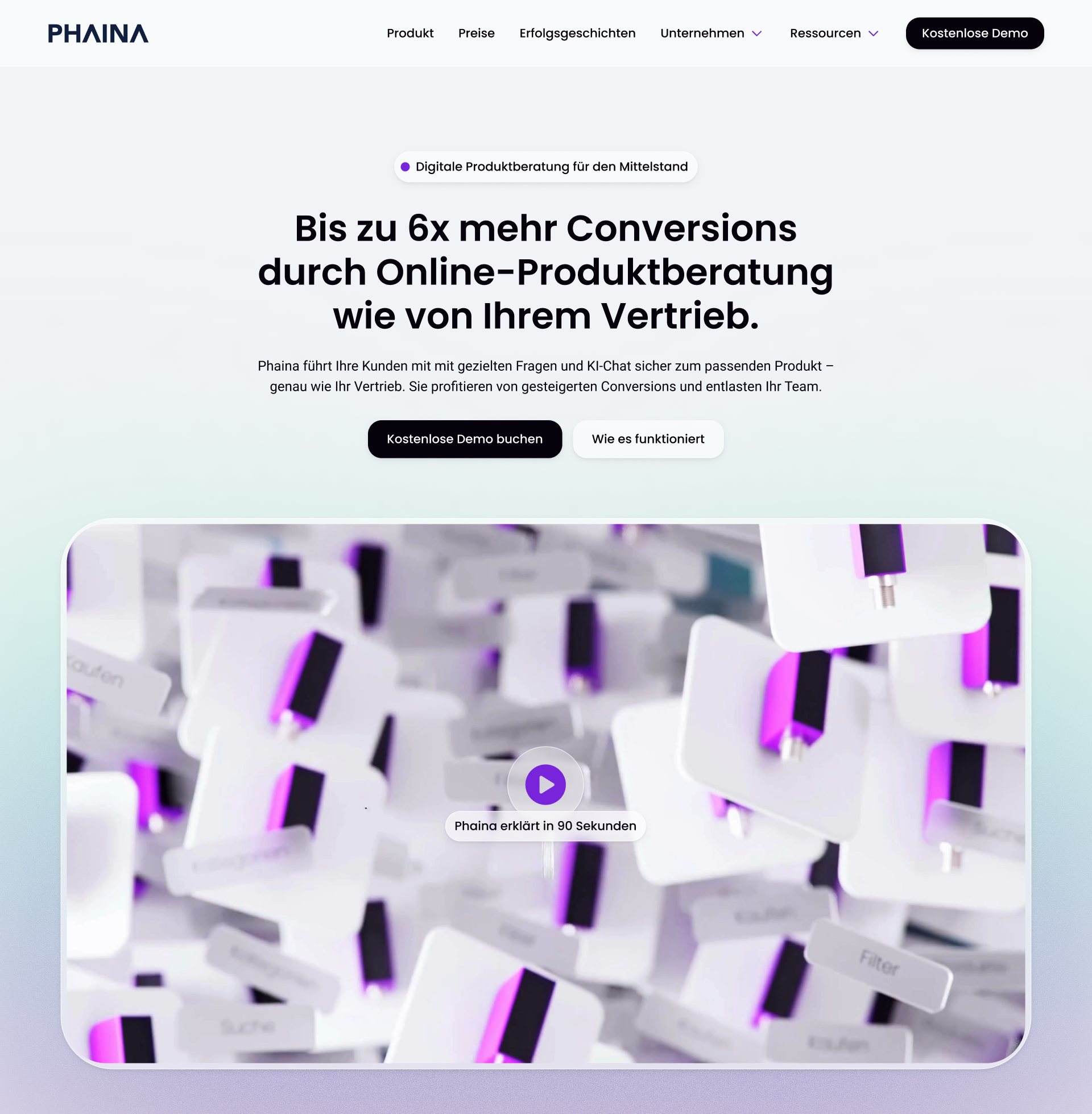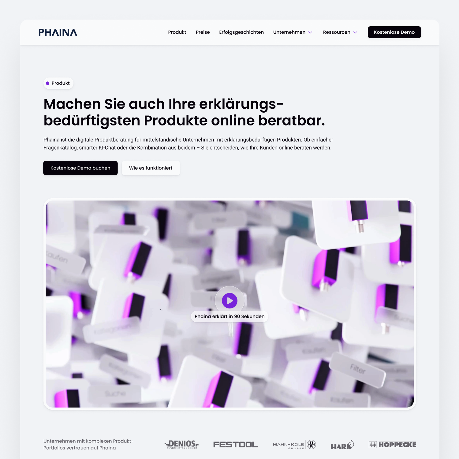 „Phaina hilft Ihren Kunden, schneller die richtige Kaufentscheidung zu treffen. Egal wie komplex Ihr Produktportfolio.“