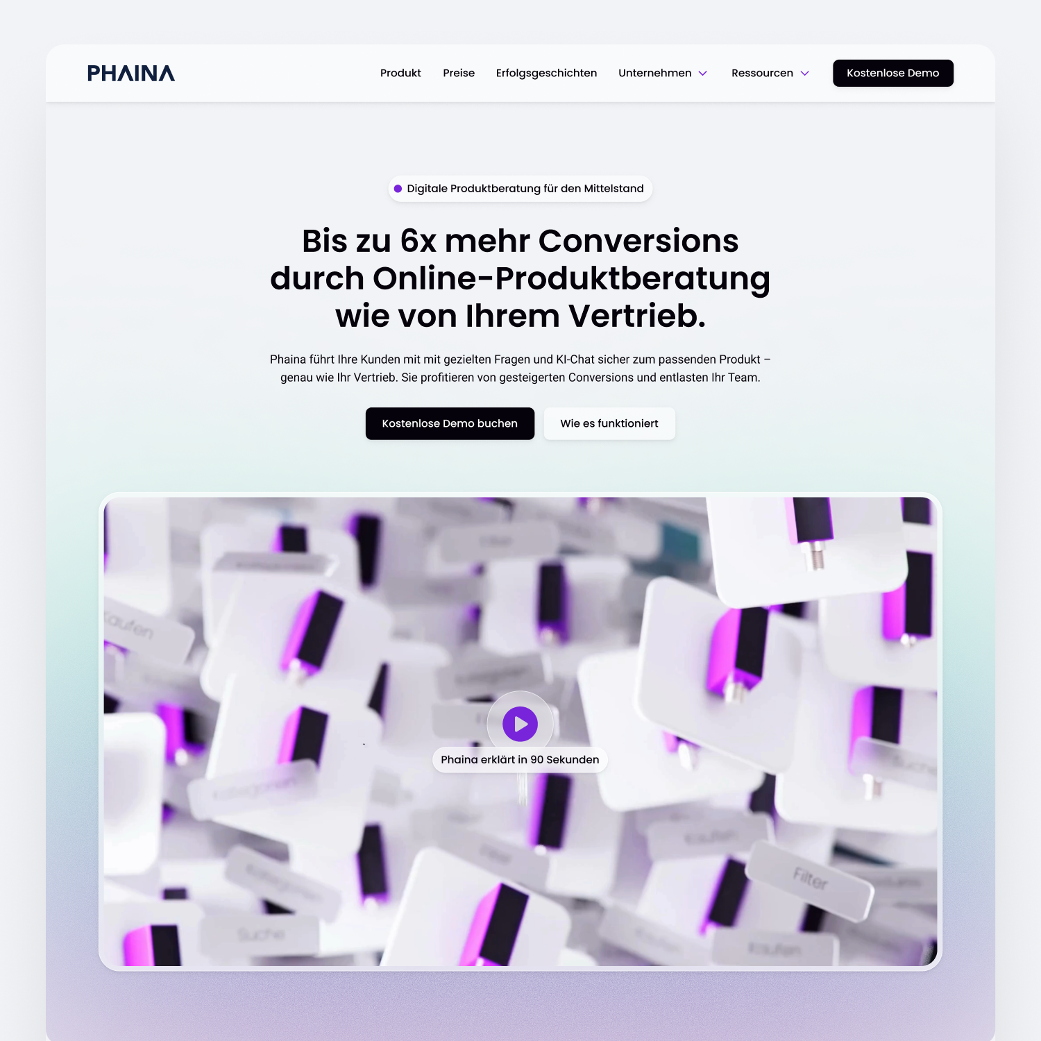 Die alte Website von Phaina tat sich schwer damit, den Kern der Lösung verständlich zu machen. Die Technologie war ausgereift, die Ergebnisse beeindruckend – aber Besucher verstanden nicht, was Phaina eigentlich ist und wie es ihnen hilft.