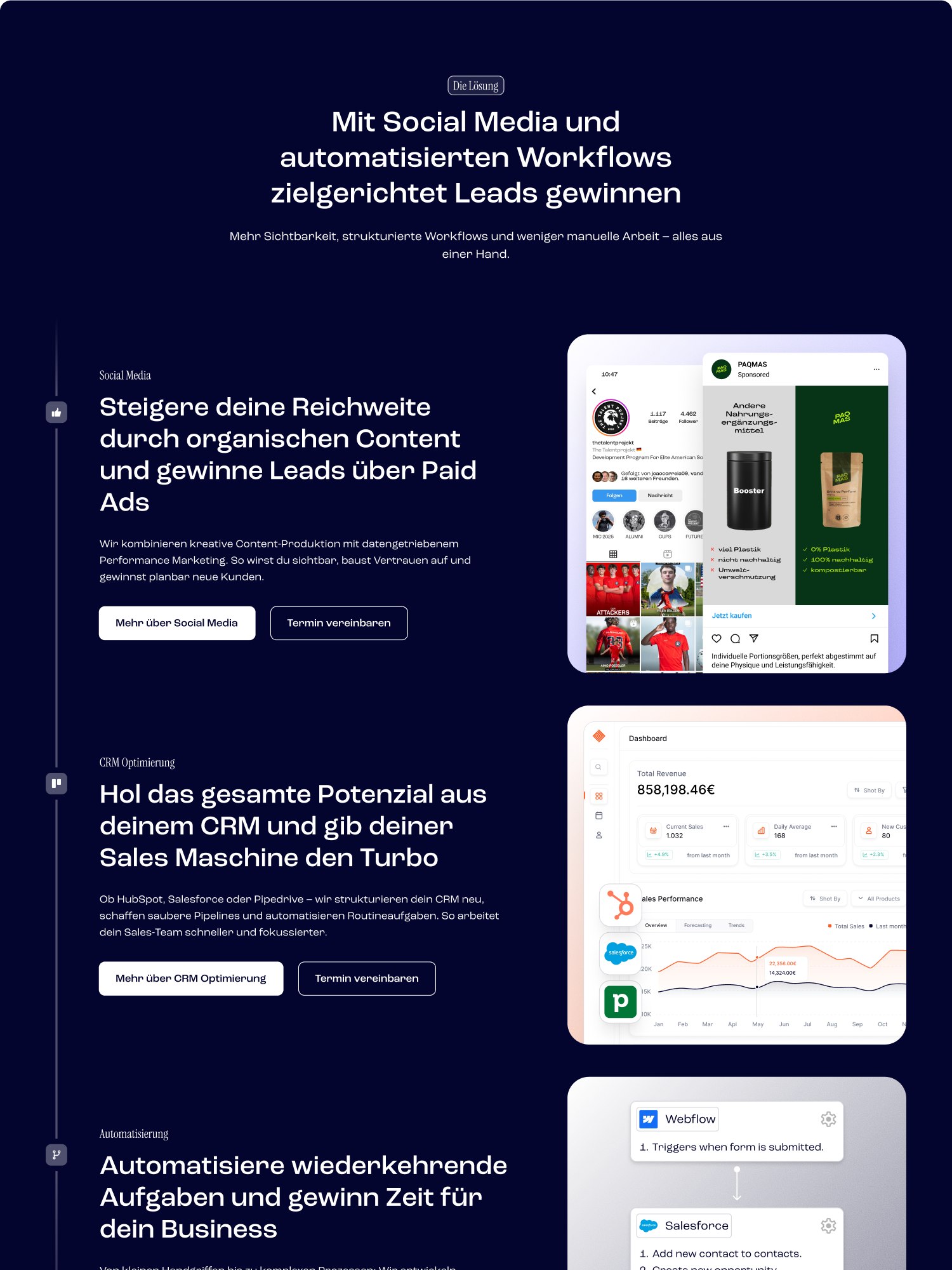 Neue Cases wurden umgesetzt, Systeme automatisiert, Kampagnen optimiert – aber es blieb keine Zeit, all das auf einer Website sichtbar zu machen.